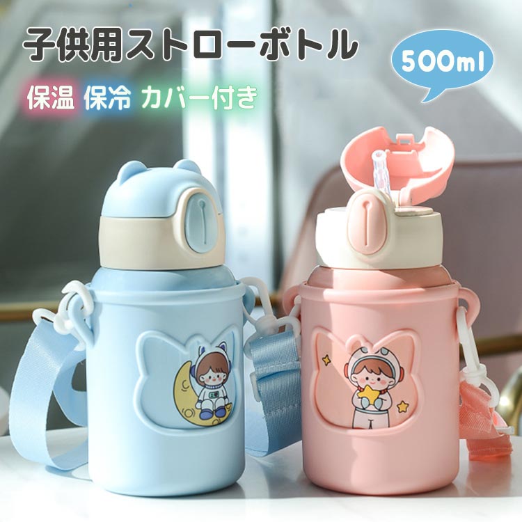 水筒キッズ500mlストローコップ付ベビー子供用保温保冷魔法瓶ステンレスおしゃれキッズ水筒こども肩掛・・・