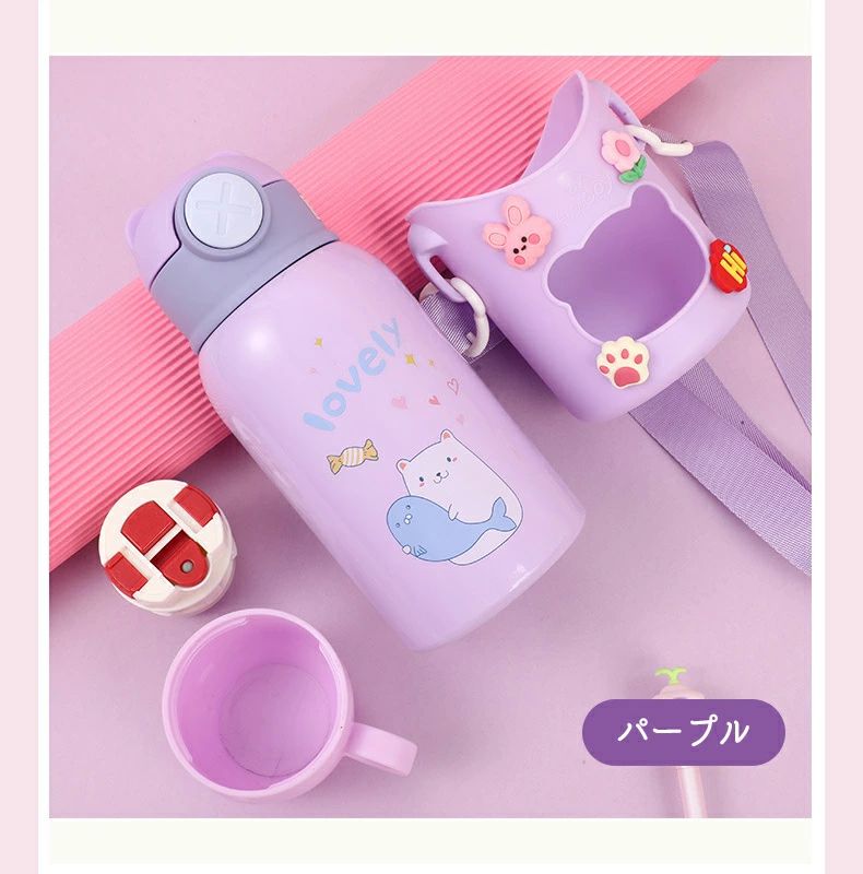 コップ付き 水筒 肩掛け ステンレス 保温 肩ひも付 小学生 かわいい 幼稚園 保冷