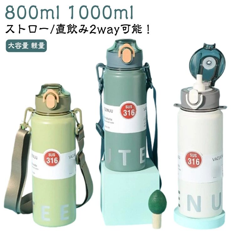 送料無料 大容量 軽量 水筒 ストラップ 水筒 持ち手 真空断熱 真空ボトル ステンレス キッズ シ・・・