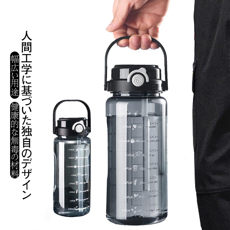スポーツボトル 2リットル水筒 水筒2L 運動水筒 2way 直飲み ストロー付き 超軽量 タイムマーカー 目盛り マイボトル 学校 トレーニング 大容量 1500ml 2000ml クリア 通勤 運動 学校