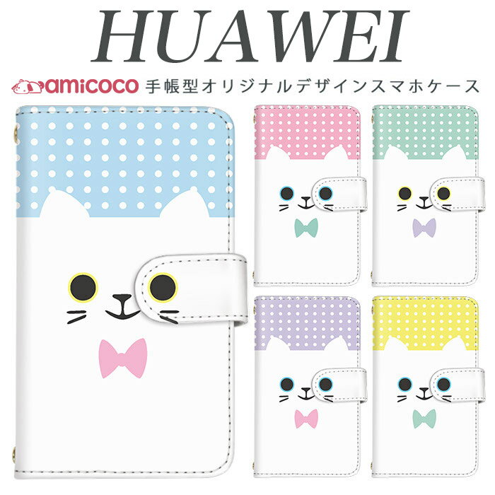 HUAWEI 手帳型 スマホケース ファーウェイ ふぁーうぇい リボン ドット 水玉 スマホ 保護 ・・・