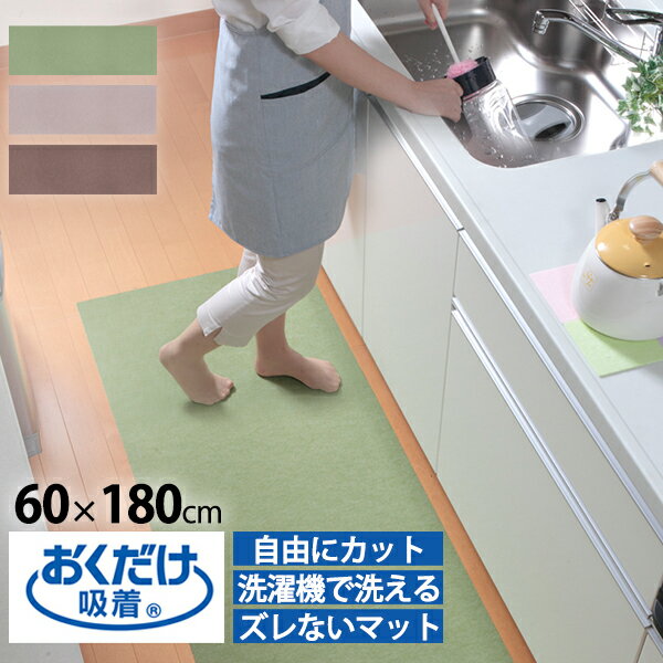 おくだけ吸着 キッチンマット 60×180cm 置くだけ 吸着マット ロングカーペット ズレない 洗・・・