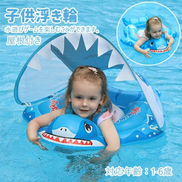 ベビー 浮き輪 足入れ 子供用 屋根付き サメ 日焼け止め 浮輪 プール 海 男の子 女の子 ドリン・・・