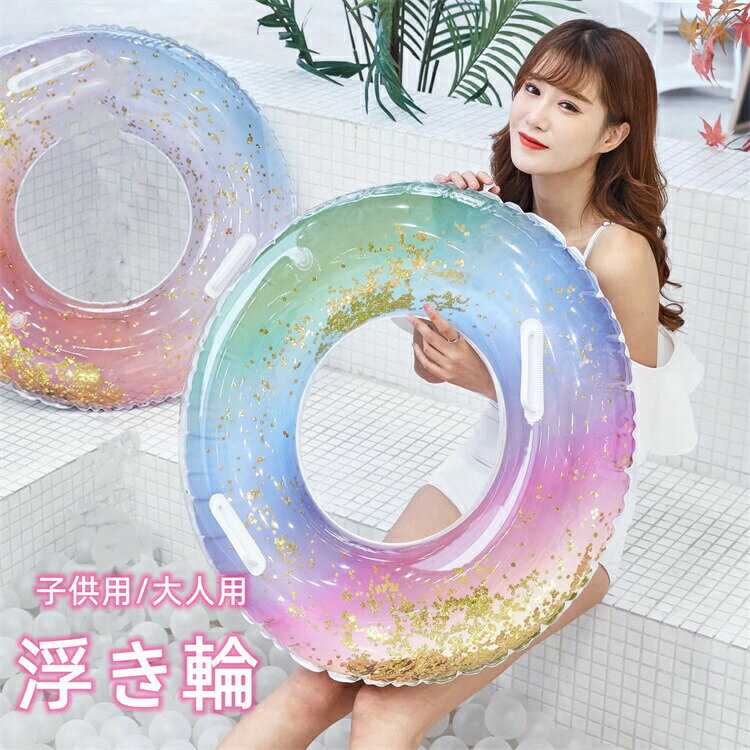 浮き輪 子供用 大人用 ラメ入り キッズ フロート かわいい キラキラ レインボー 男の子 女の子 兼用