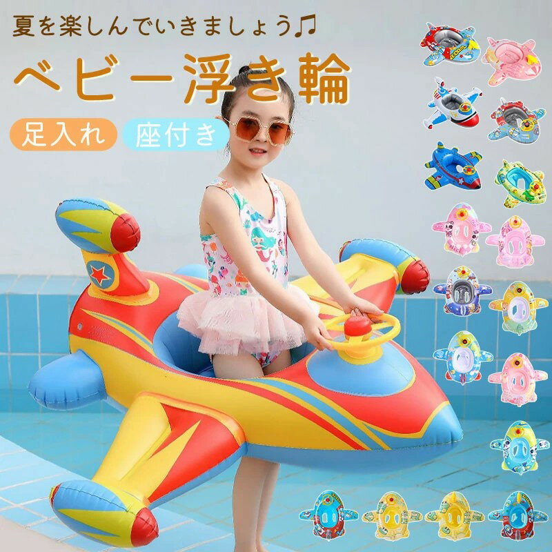 便利に携帯 赤ちゃんうきわ 子供にさらに安全 飛行機が浮き輪になる ハンドル付き 足入れ浮き輪 厚目PVCを採用して安全性更にアップ
