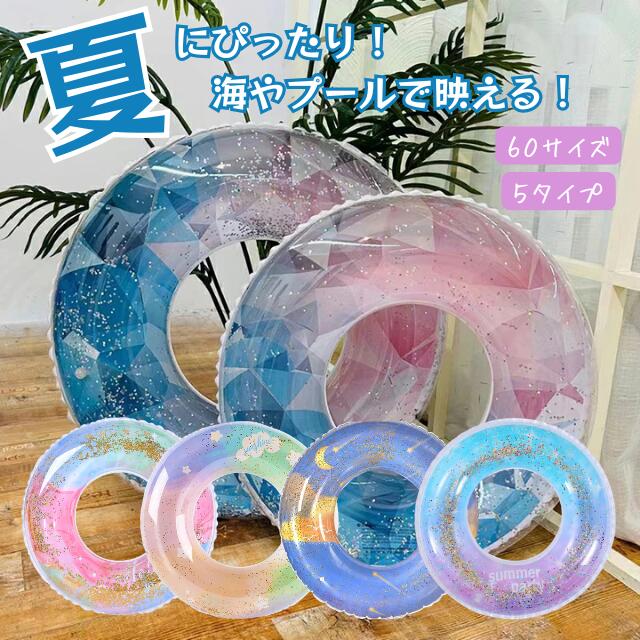 浮き輪 キラキラ キッズ 子供 旅行 ビーチ 海 プール 60cm ラメ スパンコール フロート 海水浴