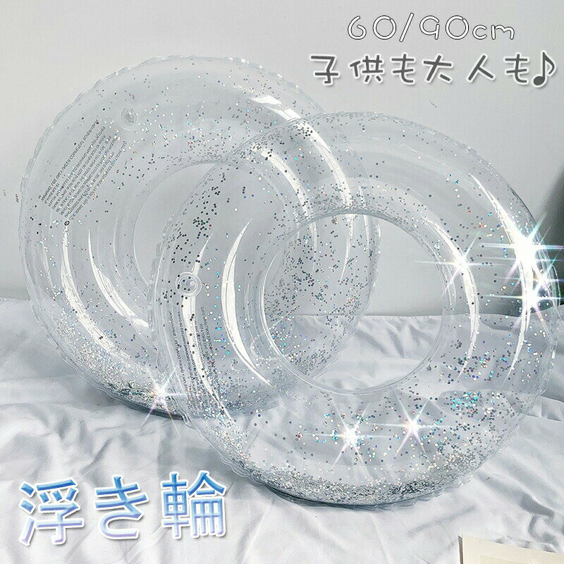 浮き輪 子供用 大人用 ラメ入り キッズ フロート かわいい キラキラ クリア 男の子 女の子 兼用・・・