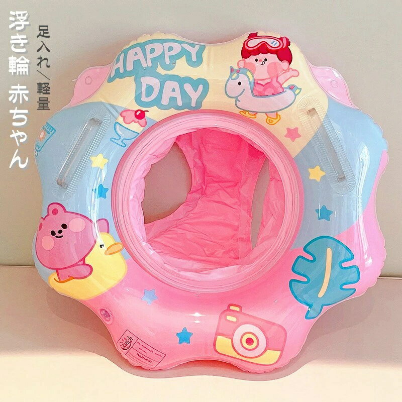 うきわ 子供用 浮き輪 可愛いプリント ベビーフロート ハンドル付き 夏 水遊び 足入れ 赤ちゃん ・・・