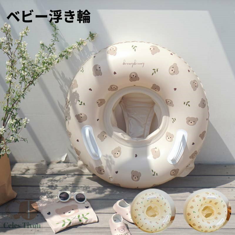 浮き輪 子供用 取っ手付き 足入れ リボン ベービー 赤ちゃん 軽量 ベビー浮き輪 1-9歳 フロー・・・