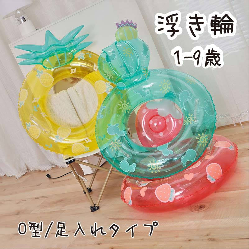 浮き輪 子供 小学生 足入れ 1-8歳 イチゴ パイナップル サボテン おしゃれ 足穴付き O型 座・・・