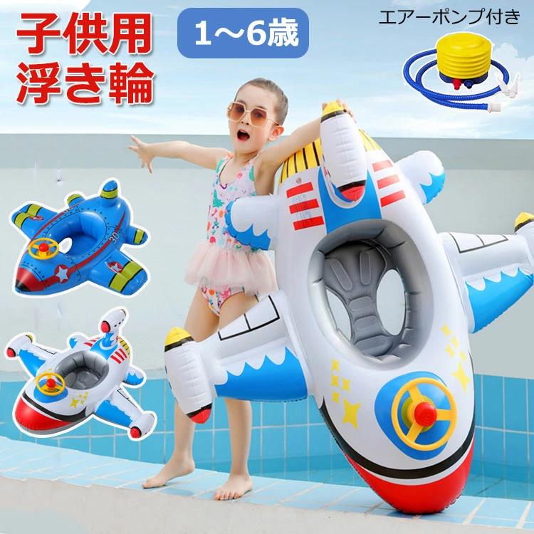 新商品追加 空気入れ付き 浮き輪 子供 足入れ 座付き 子ども用 かわいい おしゃれ 飛行機 浮輪 ・・・
