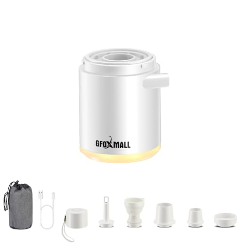 Gfoxmall キャンプ エアーポンプ 電動 空気入れ・抜く【5つのノズル&ライト付】1400mA・・・