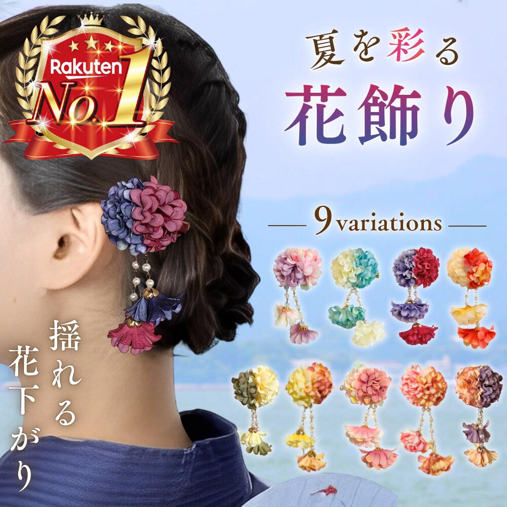 簪 ヘアクリップ ゆかた 可愛い 下がり クリップタイプ 髪留め まとめ髪 おだんごヘア お祭り 2色使い フラワー 全9色 選べるカラー 和装小物 和小物