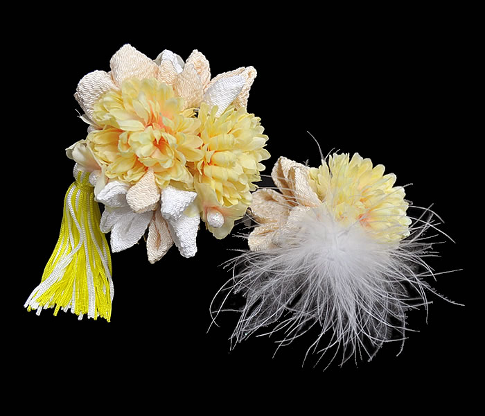 振袖用 髪飾り -梅・菊/ベージュ・黄色系- 大小2個セット [ 1312-1529 ] ヘアーアク・・・