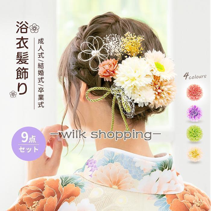9点セット 成人式 髪飾り ヘアアクセサリー ぶら飾り 振袖 和装 浴衣 クリップ 髪留 花 ポンポ・・・