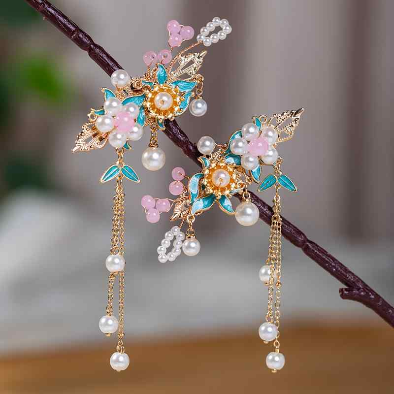 髪飾り 女の子 子供 キッズ レトロ 古風 漢服 和装 アンティーク調 手作り 歩揺 流蘇 簪 ヘア・・・