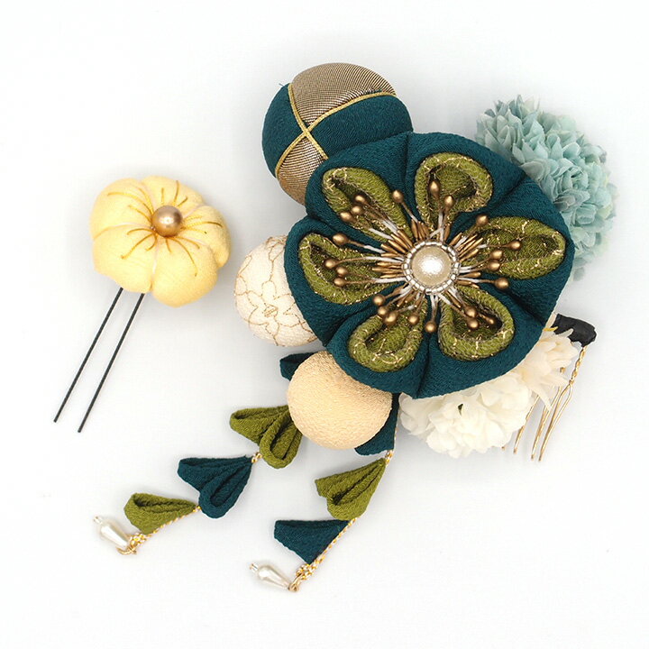 髪飾り 2点セット 京都 西陣 和小物 京あそび 緑 成人式 花 つまみ細工 和風 浴衣 着物 振袖・・・