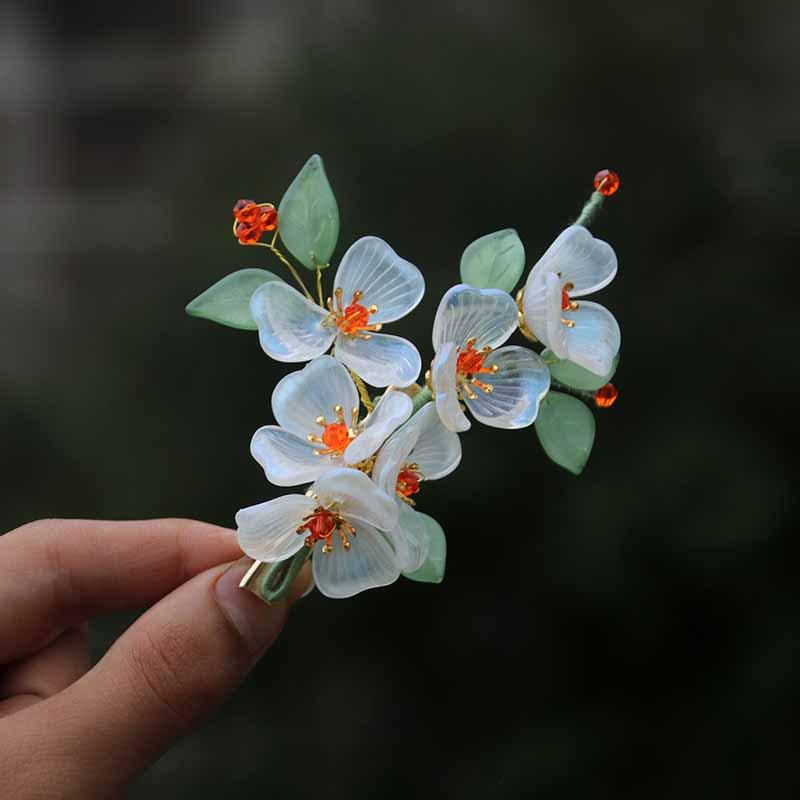 ヘアクリップ 子供 女の子 和風 レトロ 古風 髪飾り 白い花 フラワーモチーフ かわいい スイート・・・