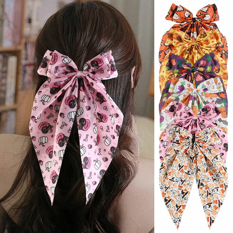 【7タイプ】ハロウィン ヘアリボン 子供 女の子 ヘア リボン クリップ ビッグリボン 大きい 髪飾・・・