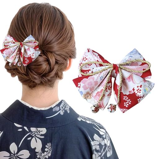 [STEELLAND]髪飾り和装リボン布製ヘアクリップ和柄鈴付き成人式卒業式七五三浴衣花火大会着物振・・・