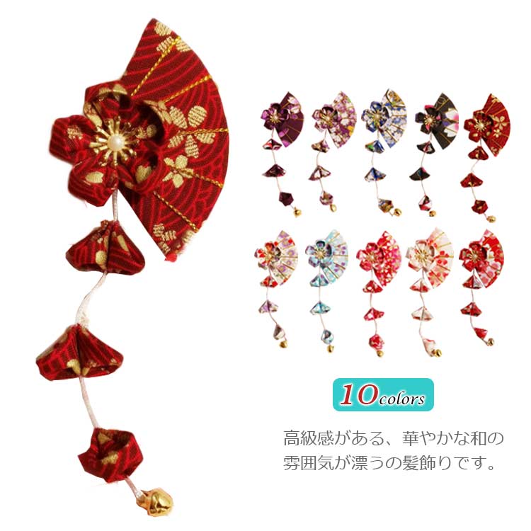 【送料無料】髪飾り 桜 扇 花 和風 浴衣 着物用 和装アクセサリー フリンジ 鈴付き ヘアアクセサ・・・