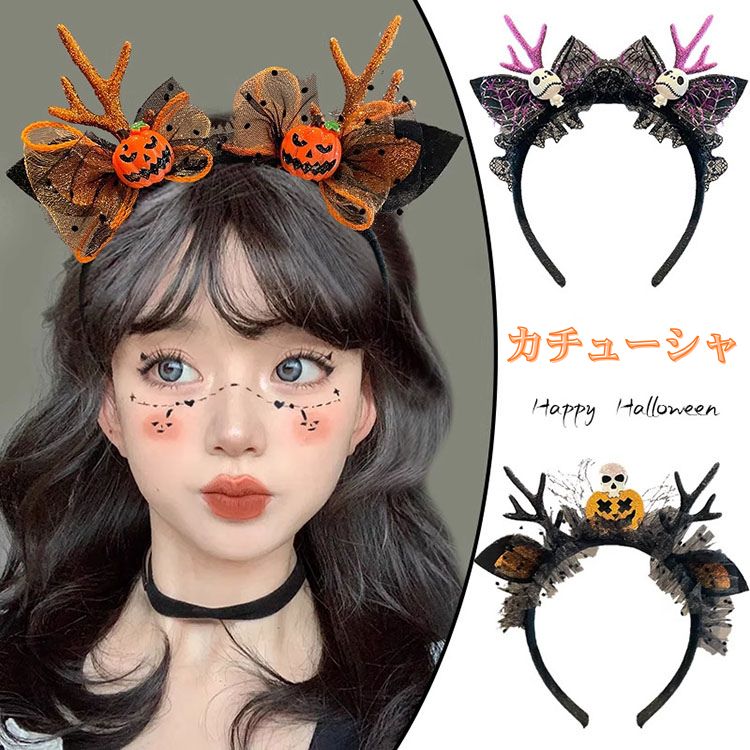 【7タイプ】ハロウィン カチューシャ 可愛い 髪飾り 大人 子供 キッズ 女の子 魔女 ヘア 仮装 ・・・