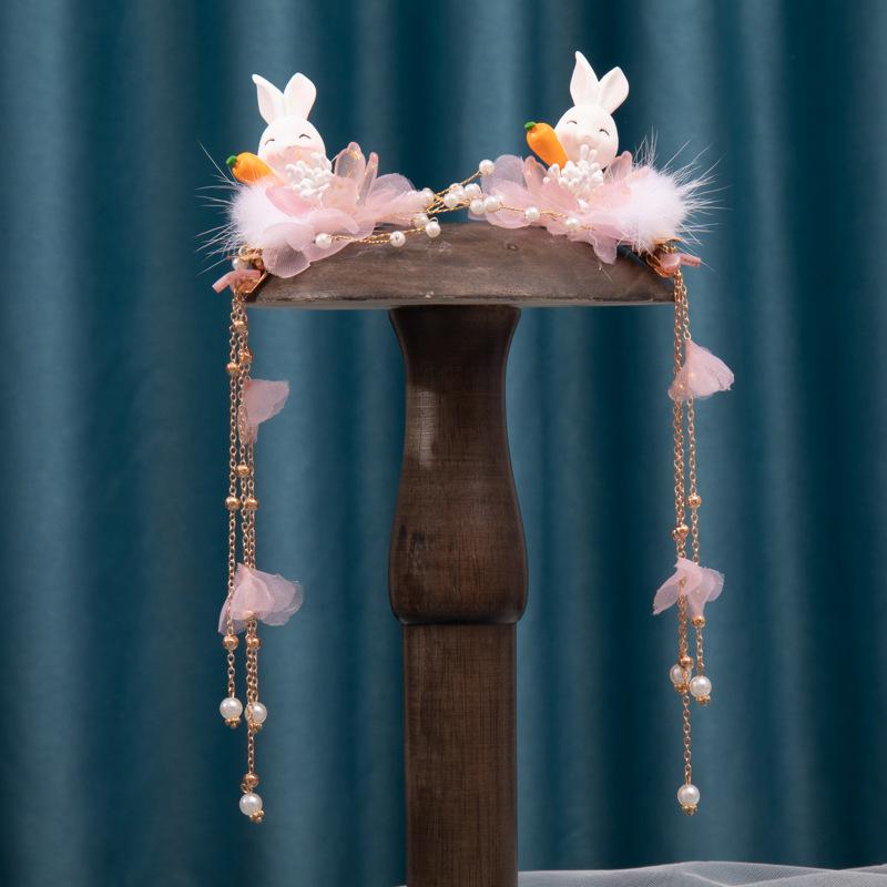 ヘアクリップ キッズ 女の子 子供 秋冬 レトロ 和風 アンティーク タッセル ポンポン ウサギモチ・・・