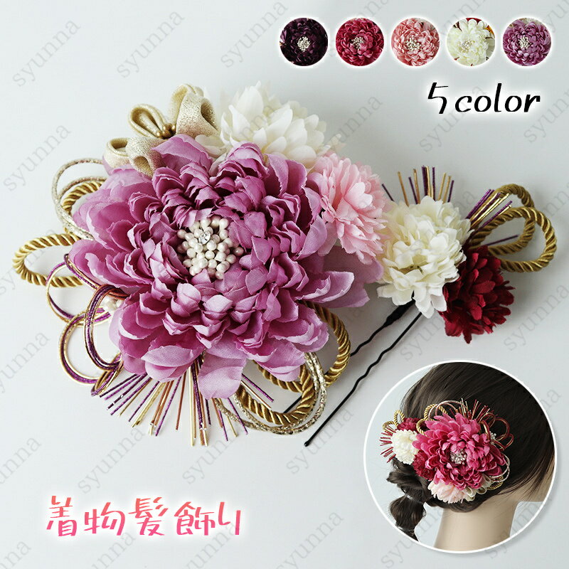 着物髪飾り 成人式 (h209#) 当日発送 5color 髪飾り 和装 振袖 和装 フラワー 大人・・・