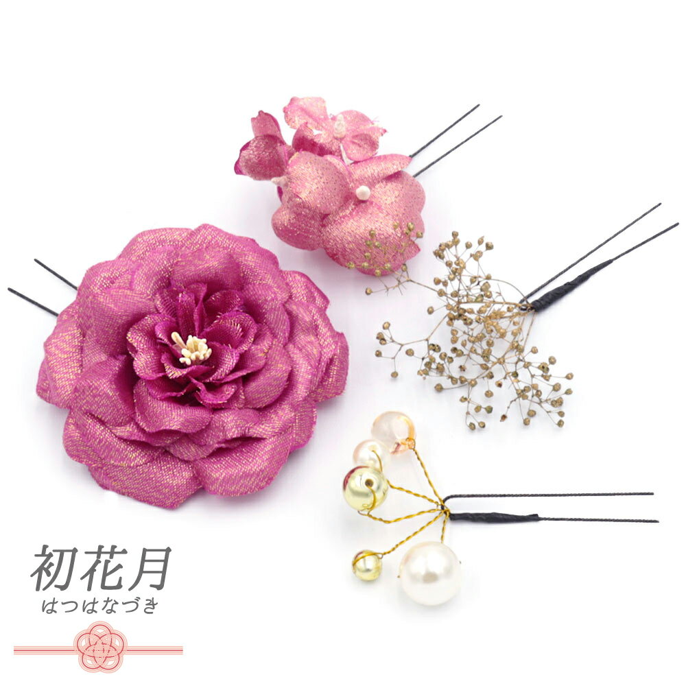 髪飾り 成人式 花 振袖 和装 袴 花 ラメ キラキラ ピンク ゴールド マゼンタ 4点セット かす・・・