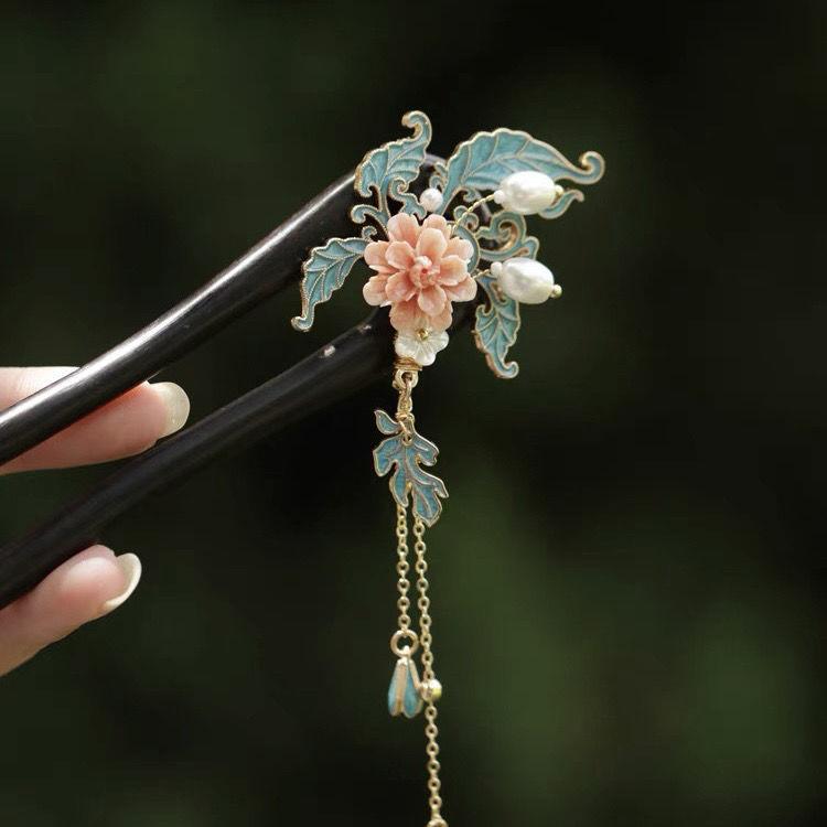 ヘアアクセサリー キッズ 子供 用 かんざし U字 ヘアピン 和装 髪飾り 花柄 木製 古風 チャイ・・・