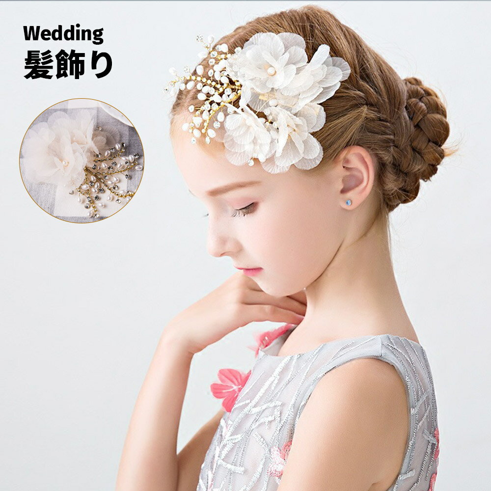 ヘアコーム ヘアアクセサリー 花 小枝 ヘッドドレス 髪飾り フォーマル ピアノ発表会 子供 ヘッド・・・