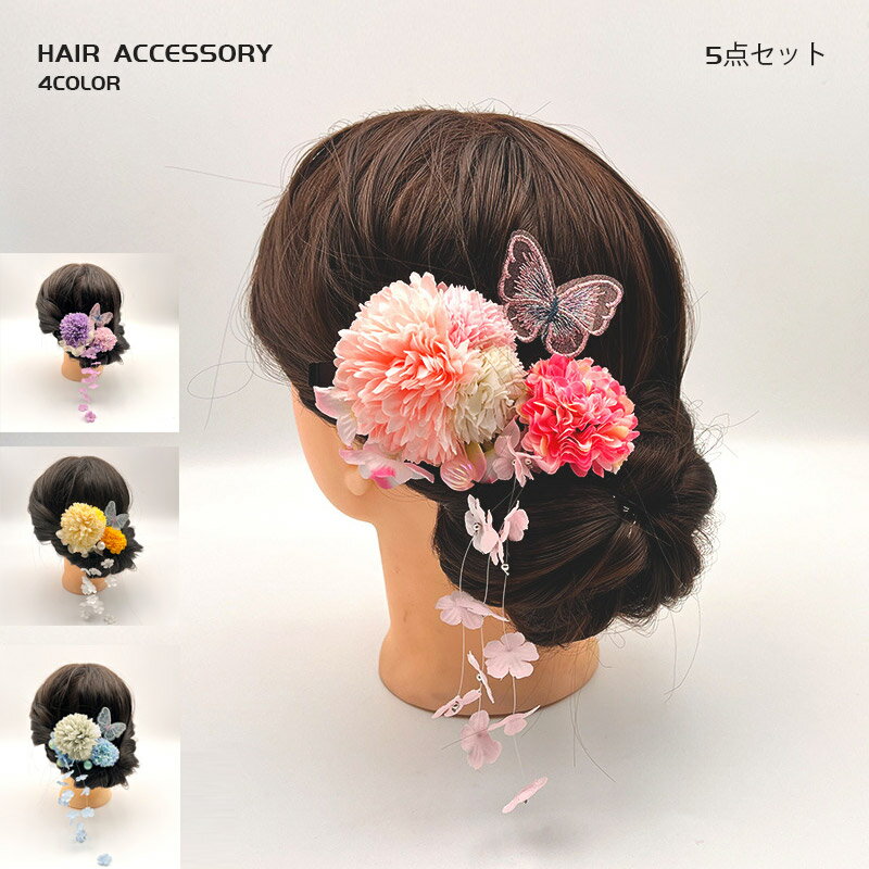 髪飾り5点セット 和装 成人式 卒業式 振袖 古典柄 結び付き Uピン 造花 菊 バラ ボタン パー・・・