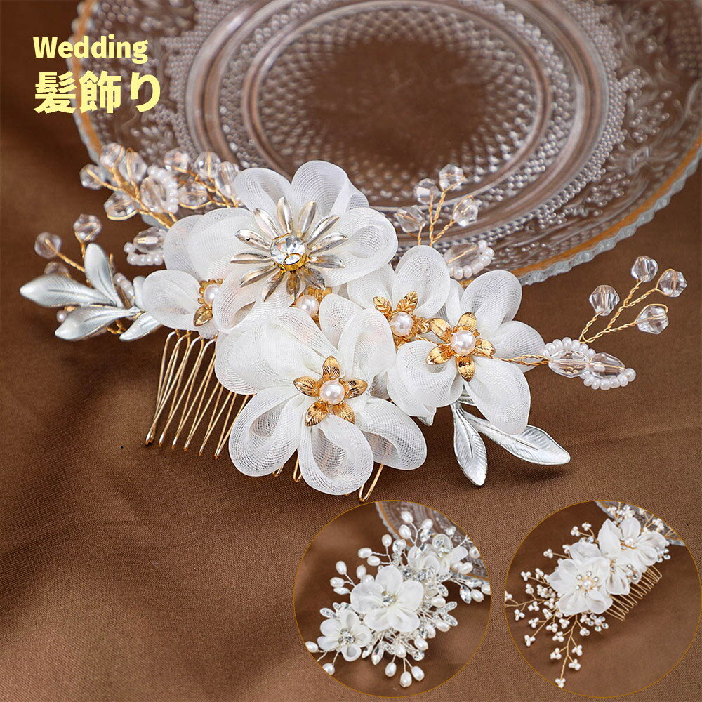 ヘアコーム ヘアアクセサリー 花 小枝 ヘッドドレス 髪飾り