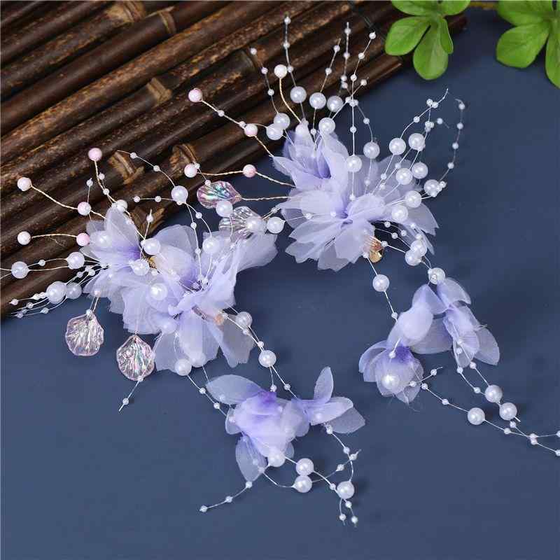 髪飾り 女の子 キッズ 子供向け 漢服 古装 コスプレ用 仙女風 紫色 絹花 シルクフラワー 歩揺 ・・・