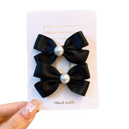 GFun髪飾りリボン小さめ子供クリップヘアアクセサリーバレッタ真珠袴卒園式結婚式発表会浴衣洋服黒2個・・・