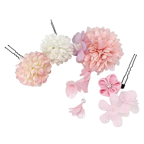 成人式の可愛い着物髪飾り♪ 4点セット 花 浴衣 髪飾り 七五三 大人 コサージュ 子供 夏着物に 成人式着物 和装の髪飾りに、大人から子供まで使える♪