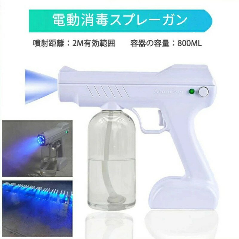 アルコールスプレー 800ML大容量 自動消毒液噴霧器 ナノブルーライト噴霧器 USB充電式 噴水量調整可能