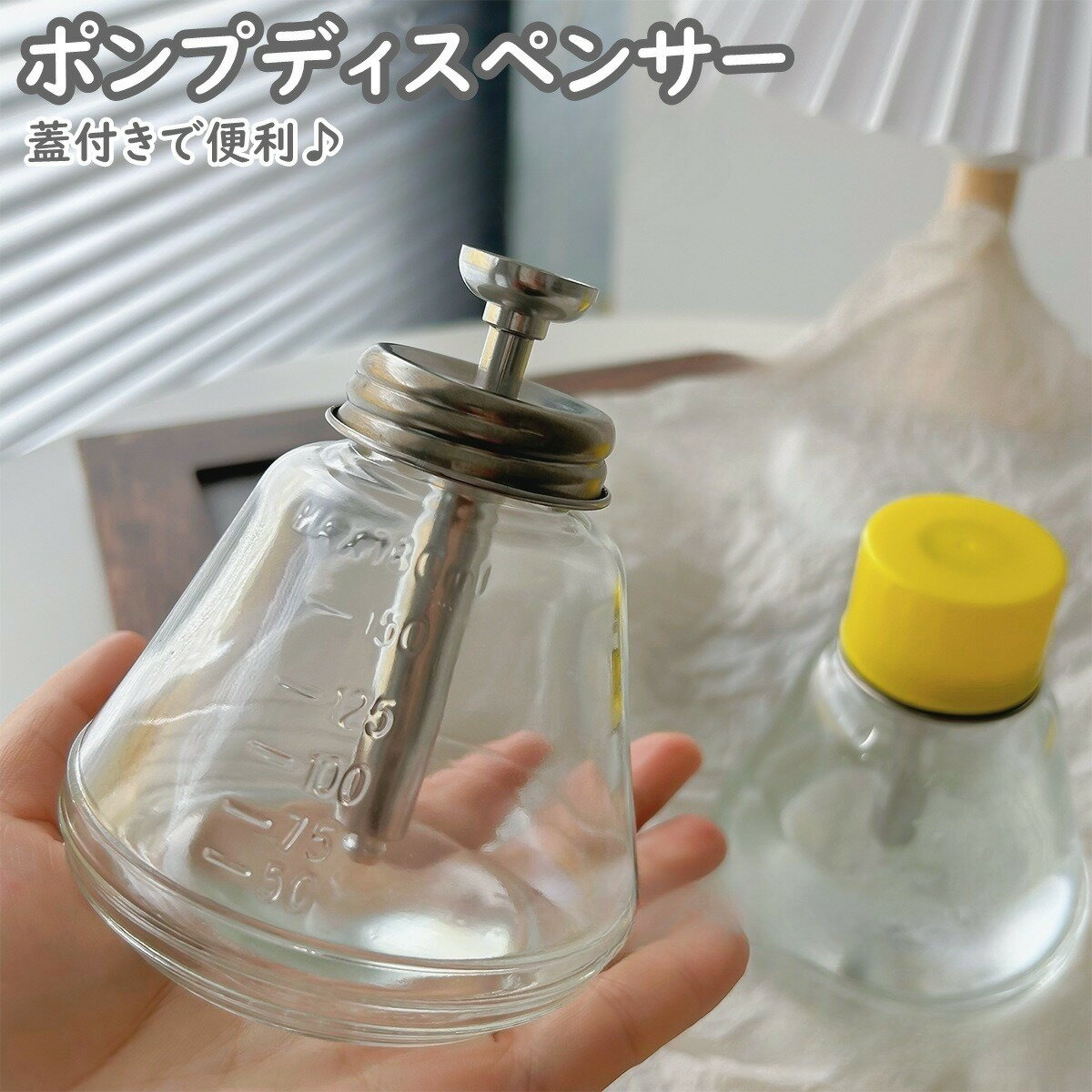 送料無料 ポンプディスペンサー ネイルリムーバー入れ 180ml クリア 透明 ガラス製 蓋付き キ・・・