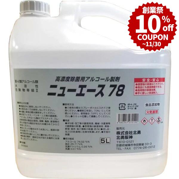 \創業祭 10%OFFクーポン/ 除菌用アルコール製剤 消毒液 ニューエース 5L アルコール74%・・・