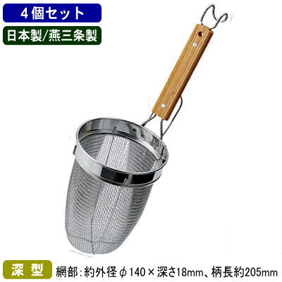 うどん てぼ 深型 業務用 日本製 燕三条製 4個組ケヤキ柄 深型 うどんあげ 4個セット新潟県 麺・・・