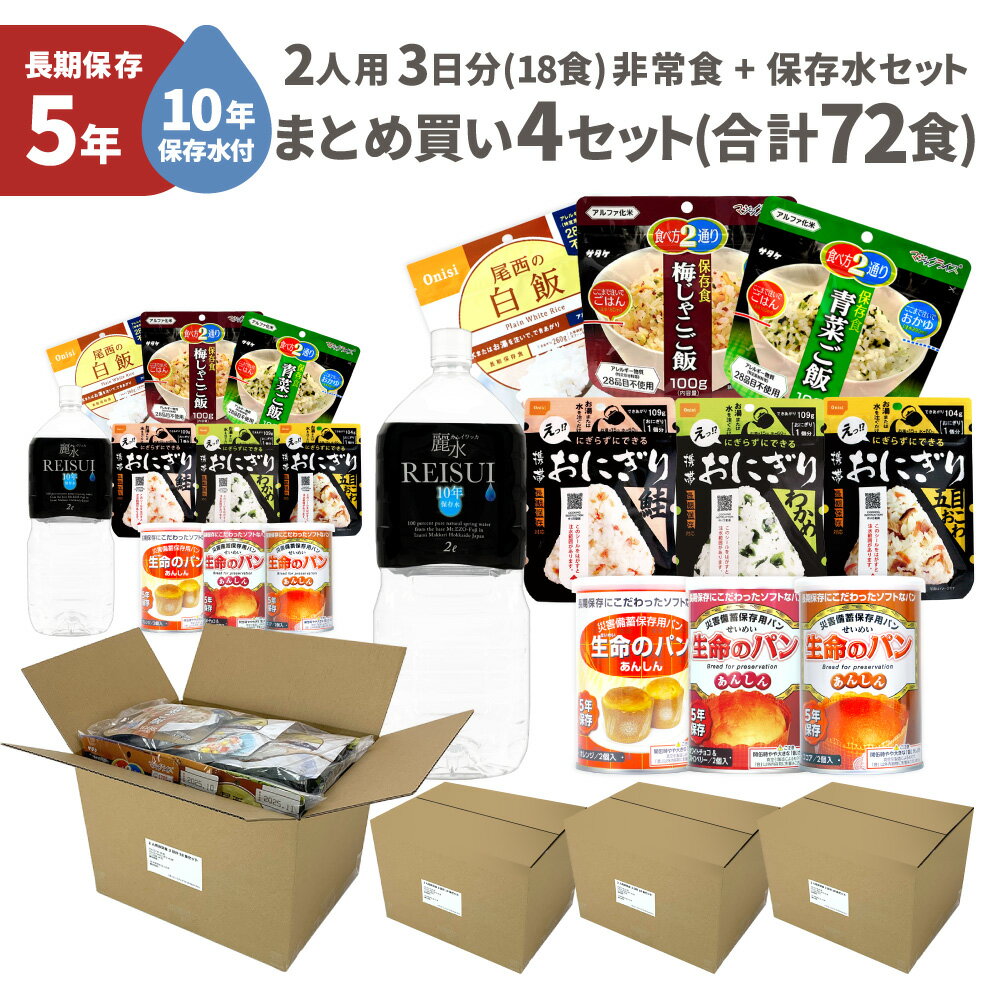 非常食セット 5年保存 まとめ買い 4セット ( 72食 ) 10年保存水付 2人用 3日分 18食・・・