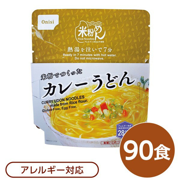 尾西食品 米粉めん 保存食 米粉でつくったカレーうどん×90個セット 袋入り フォーク付き 非常食 ・・・