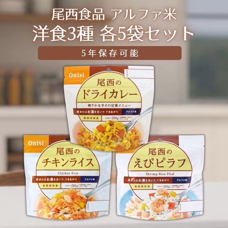 尾西食品 アルファ米 洋食3種15袋セット 非常食 保存食・・・