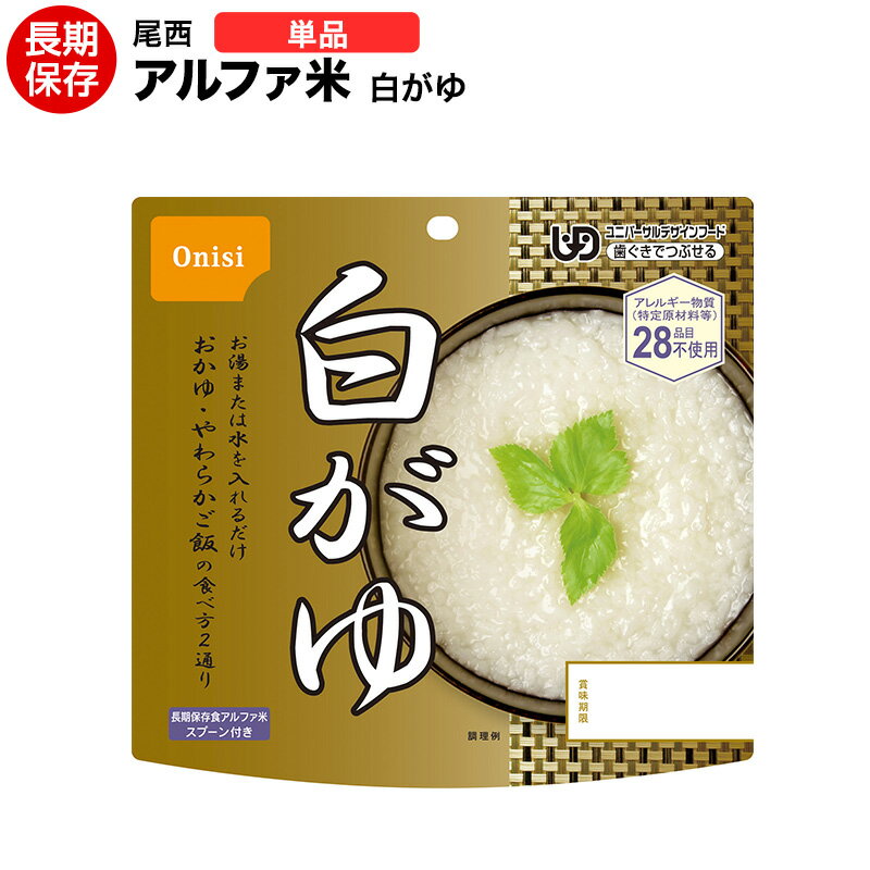 アルファ米 尾西食品 白がゆ 【ハラル認証取得】【保存食/非常食/防災食/備蓄食/長期保存/災害/避・・・