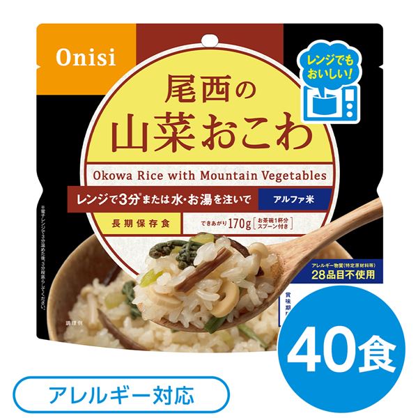 〔40個セット〕 尾西のレンジ+(プラス) 山菜おこわ 80g×40袋 電子レンジ調理可能 長期保存・・・