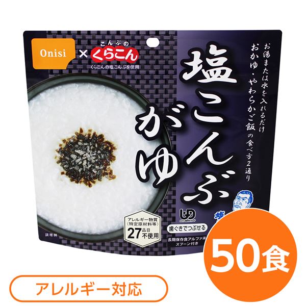 【尾西食品】 アルファ米/保存食 【塩こんぶがゆ 50個セット】 スプーン付き 日本製 〔非常食 企・・・