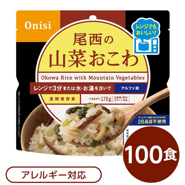 〔100個セット〕 尾西のレンジ+(プラス) 山菜おこわ 80g×100袋 電子レンジ調理可能 長期・・・