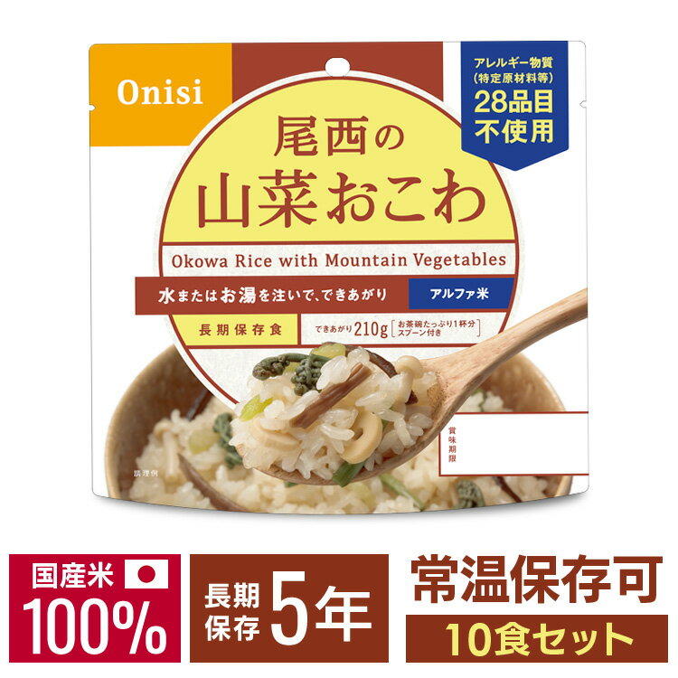 【10食】アルファ米 尾西 山菜おこわ 5年保存 非常食 米 防災食 アルファ米 保存食 5年 アル・・・