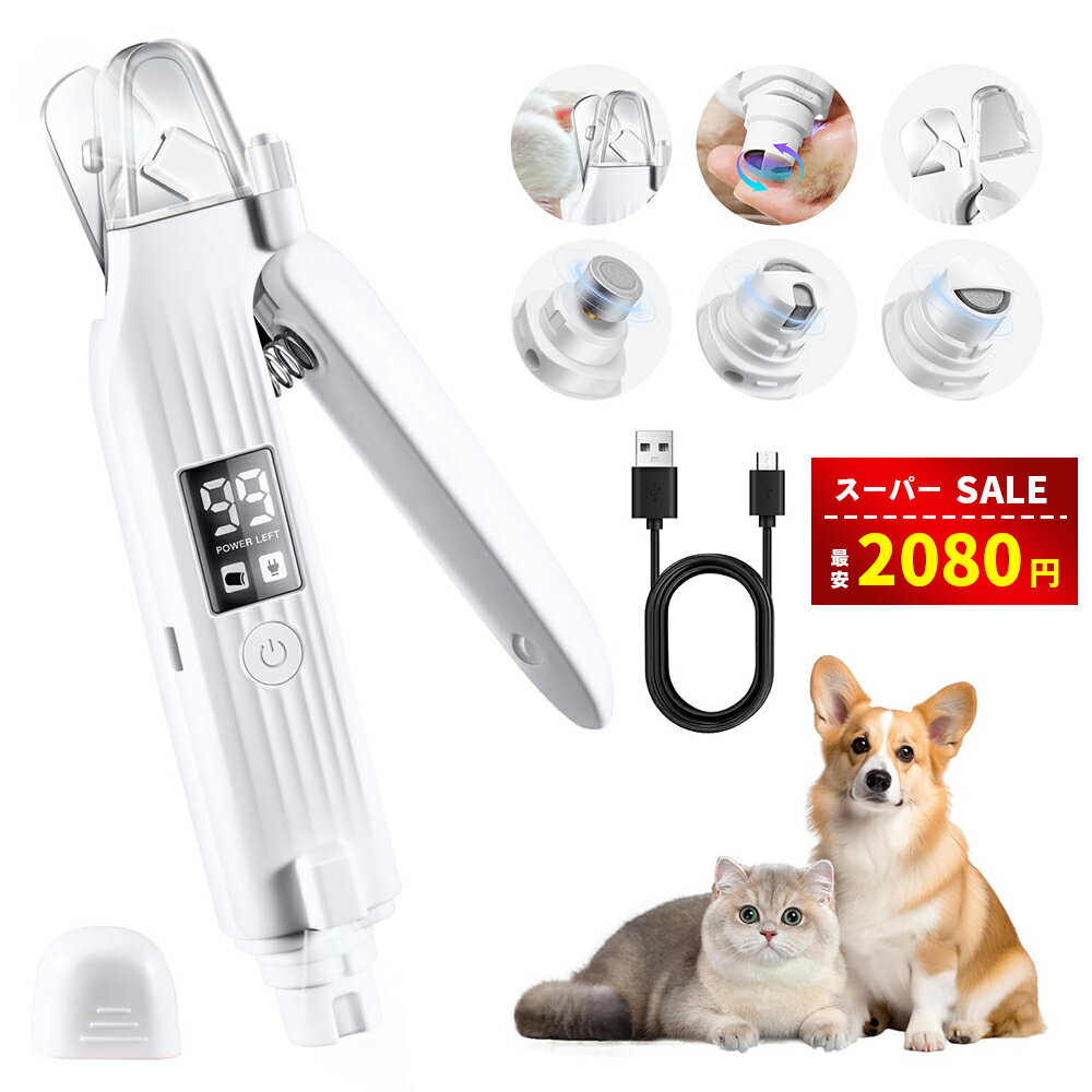 ペット用爪きり 犬 猫 電動爪切り 静音設計 低騒音 ペットの爪研ぎ機 USB充電式 簡単操作 モーター 二段階スピード 素早く削れ 猫 犬 小型犬 中型犬 大型犬通用電動爪トリマー
