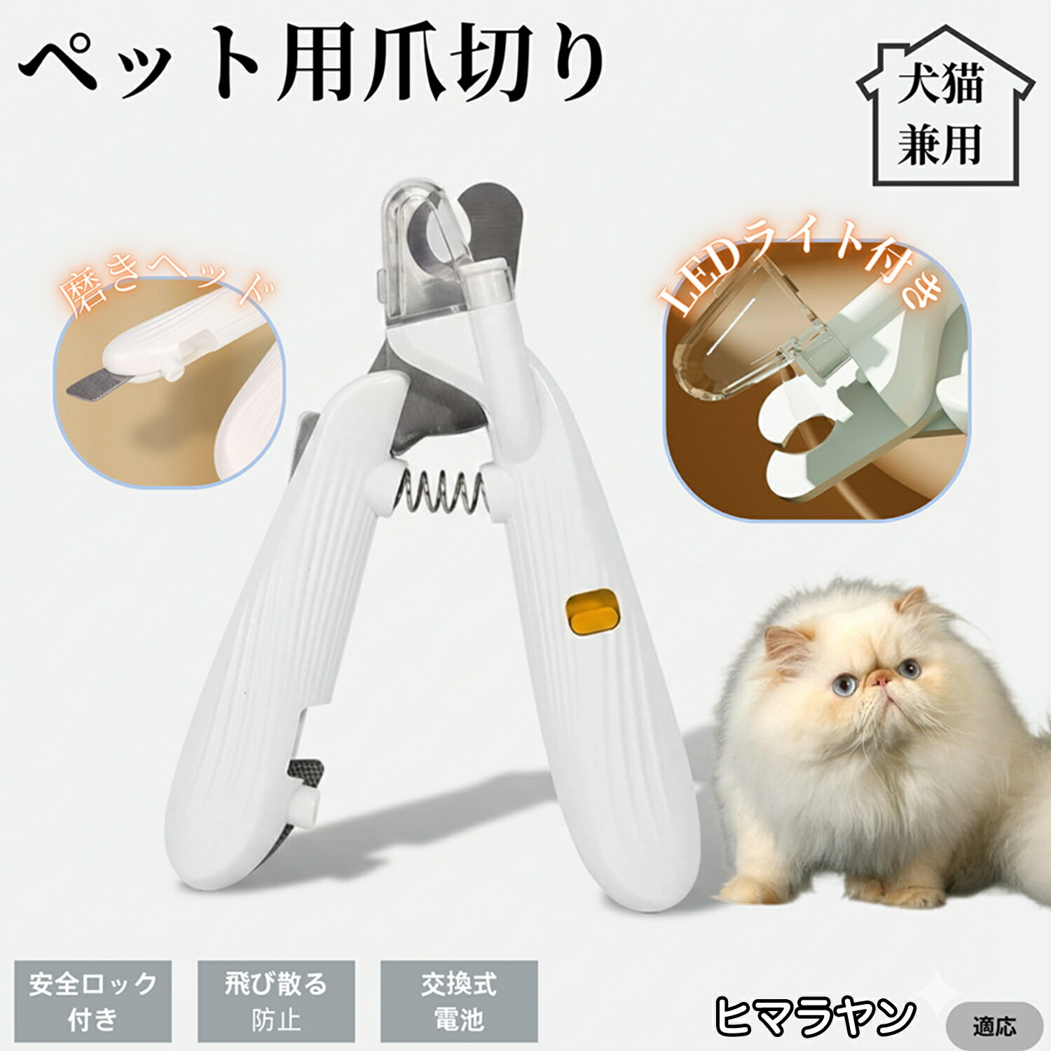 ペット用爪切り ledライト付き 猫 犬 簡単 猫犬兼用 ニッパー 電池式 ライト つめ切り 小型犬・・・